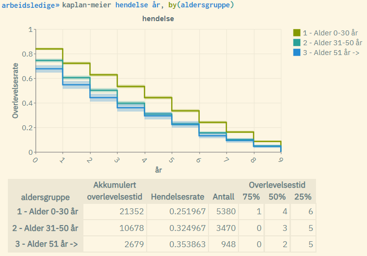 It is now possible to run Kaplan-Meier survival analysis in microdata.no. The command “kaplan-meier” is the first in a series of this type of analysis. Eventually, we will also introduce multivariate cox analysis.
