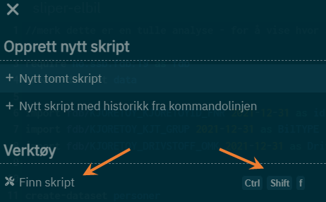 Vi anbefaler hurtigtast ctrl + shift + f, men du finner også verktøyet i skript-menyen som vist nedenfor.